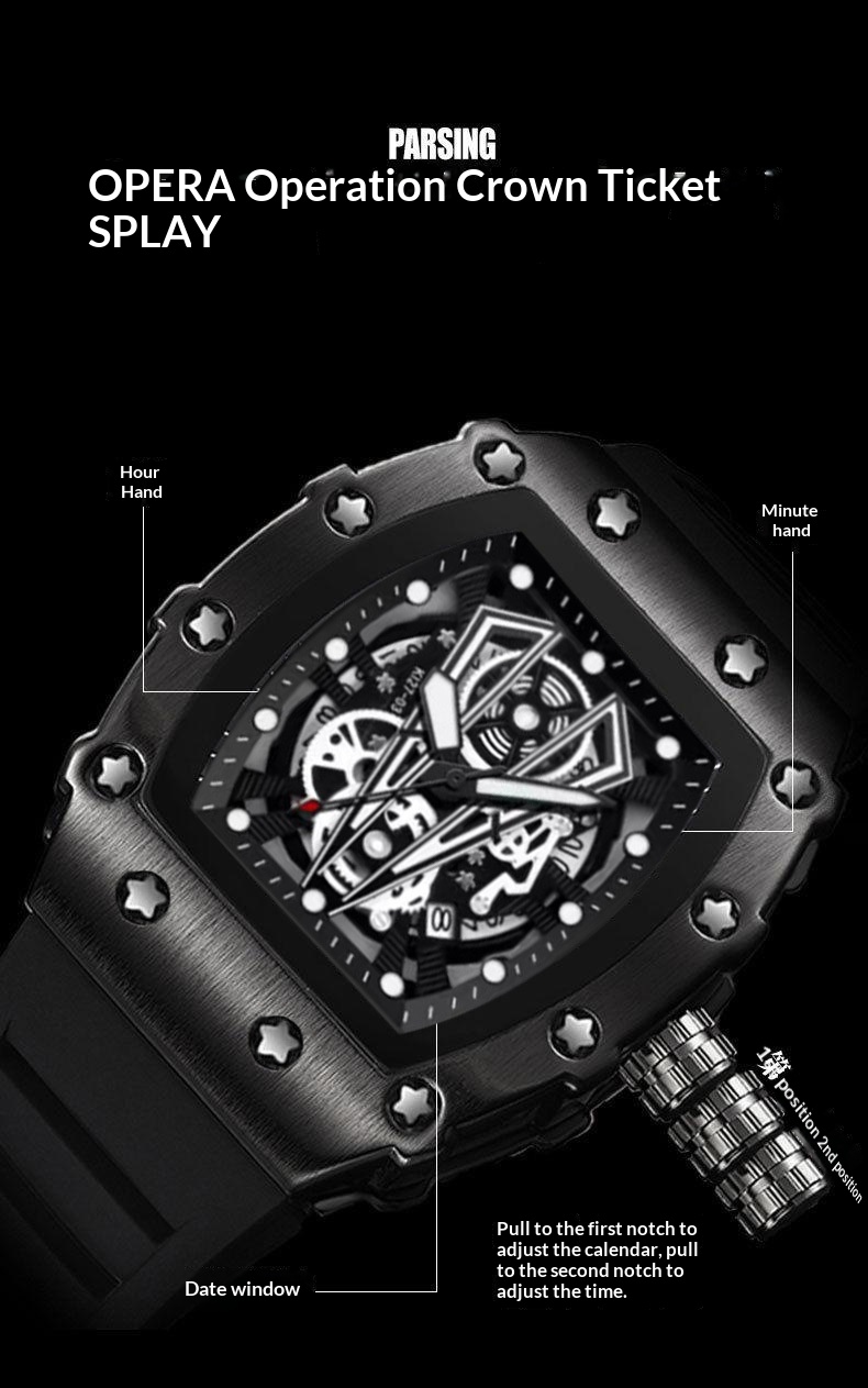 Colors: Black, red, yellow, blue, orange; gold case with black strap, gold case with red strap, gold case with yellow strap, gold case with blue strap, gold case with orange strap; silver case with black strap, silver case with red strap, silver case with yellow strap, silver case with blue strap, silver case with orange strap.